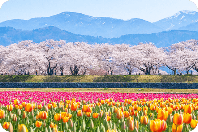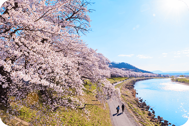 綿延數公里的櫻花隧道,沿著河濱和河堤綻放,形成「櫻並木」繪景。粉櫻、綠樹,以及清澈的河岸水光,令人忍不住按下快門、收藏每一刻的壯麗畫面。