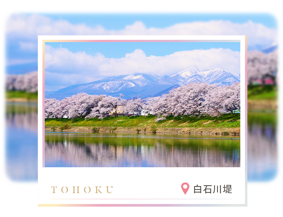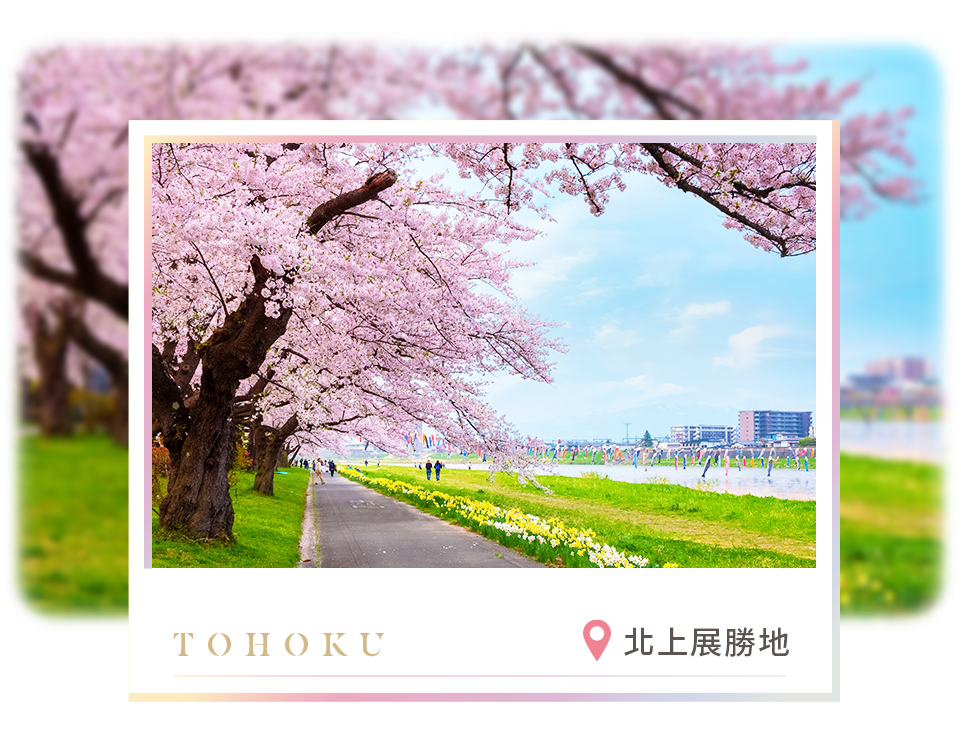 (1) 河津櫻堤岸 (2) 北上展勝地 (3) 白石川堤 (4) 千波公園 (5) 盛岡高松之池