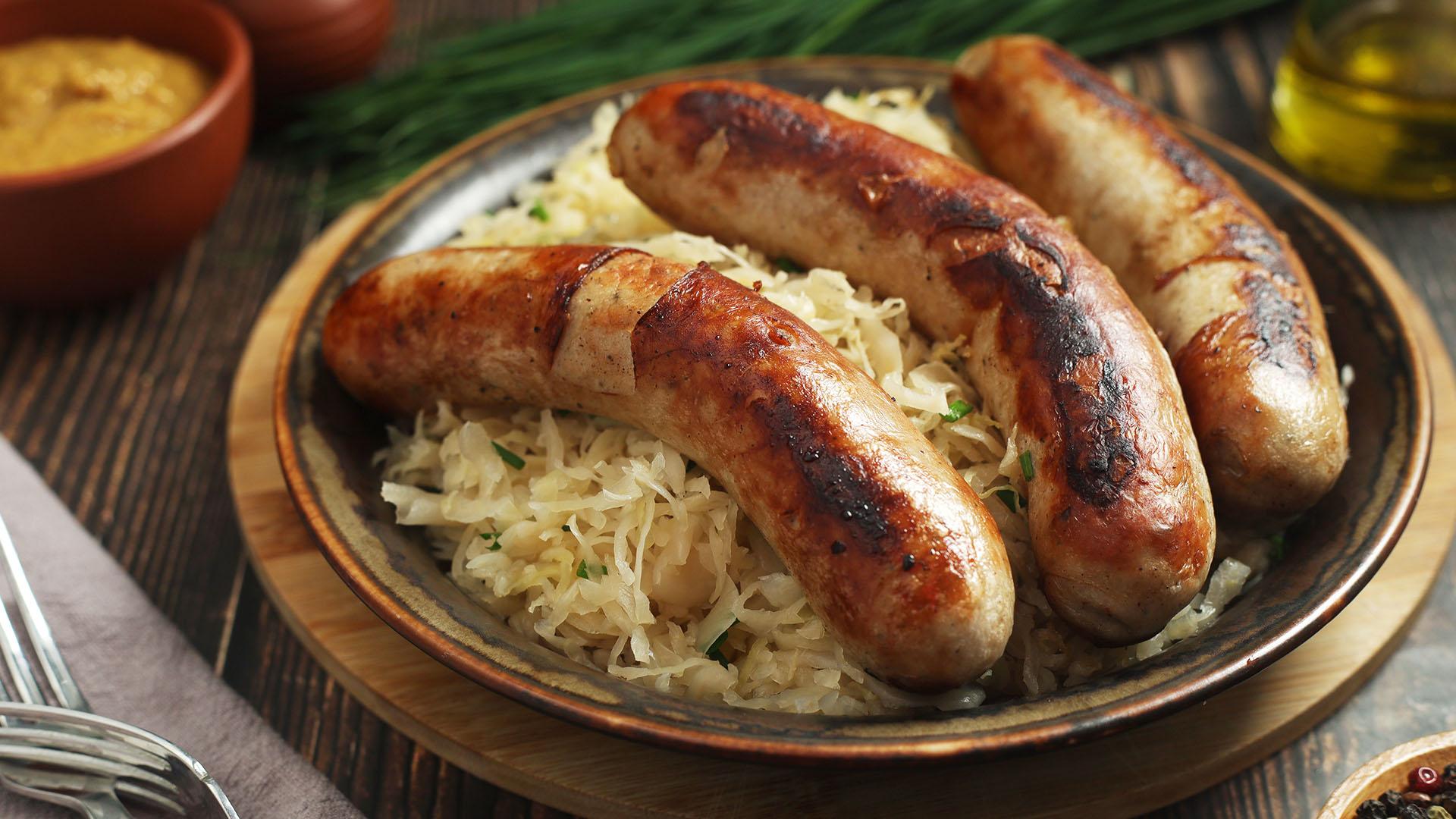 香腸在熱鐵板上滋滋作響,散發誘人香氣,口感溫潤的白香腸、小巧辛辣的紐倫堡香腸、煙燻味十足的法蘭克福香腸,各有特色的香腸搭配啤酒,簡直是一場味覺盛宴!