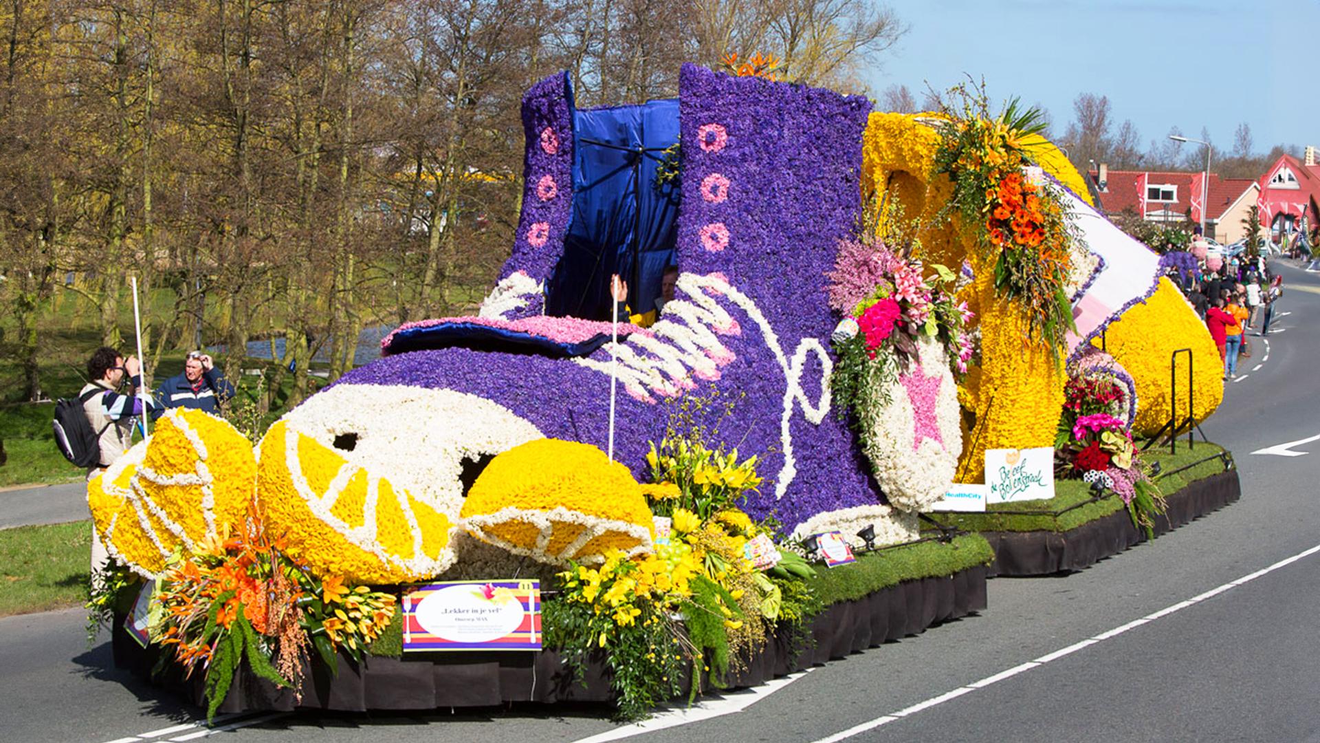 荷蘭鬱金香花季最受矚目的活動,非4月的「麗絲花車大遊行」莫屬。這場鮮花編織的視覺盛宴,歷史可以追溯到二戰剛結束的1947年,花農們為了推廣花卉產業,突發奇想用鮮花裝飾破舊卡車和腳踏車,顛覆人們想像。之後演變成年度盛事,如今已是世界最盛大的花車遊行之一,遊行路線全長約42公里(相當於全程馬拉松的距離),吸引數百萬人共襄盛舉。