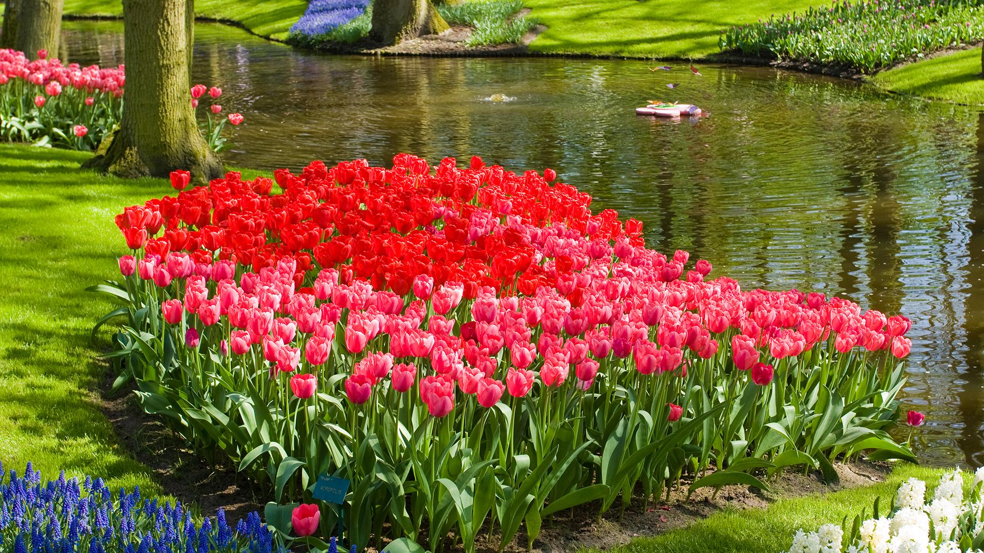 首推「世界上最大的花園:庫肯霍夫」,這片繽紛多彩的花花世界,面積廣達32公頃,種植700萬株球莖花卉,包含800多種鬱金香,還有風信子、水仙、百合。每年開放日期略有不同,出發前務必查詢官方公告。