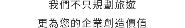 我們不只規劃旅遊,更為您的企業創造價值