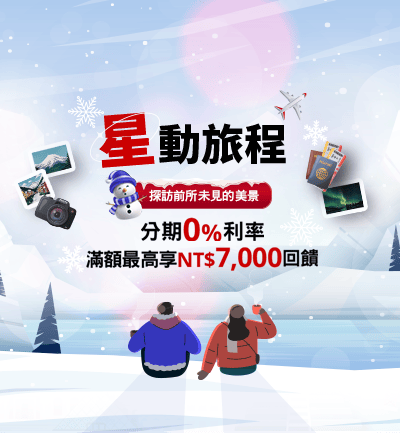 - 請注意指定旅行社有權決定適用本活動之商品及其得分期之期數與門檻,持卡人登錄或購物前請先確認該商品是否適用本活動。