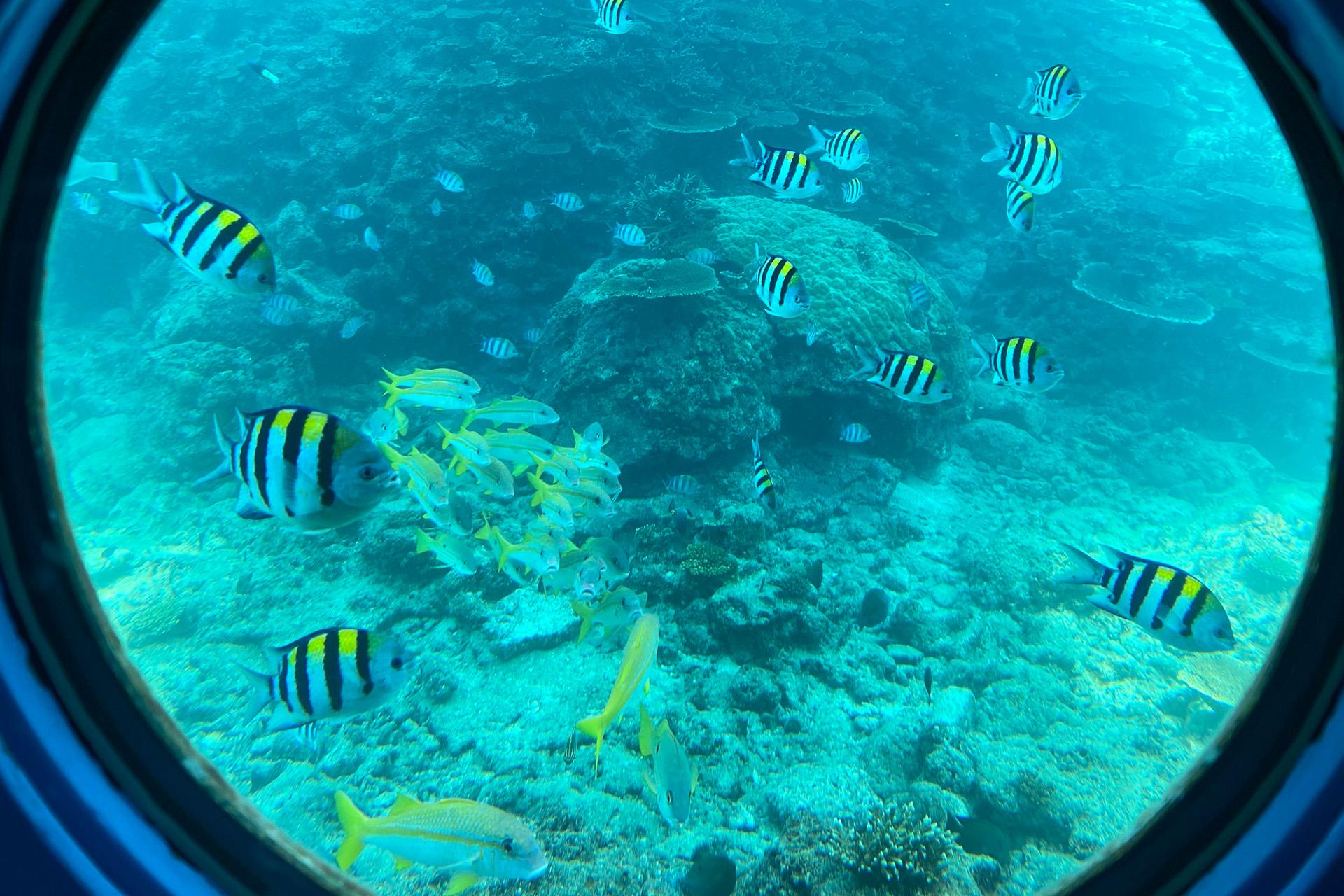 部瀨名海中公園座落風光明媚的海岬處,不僅擁有無敵碧藍海景,還有獨特的「海中展望塔」,不需要換裝,只要走下螺旋梯,就能抵達水深5公尺處,近距離欣賞海洋世界。也可以選擇搭乘「海底景觀玻璃船」,一窺無憂無慮的海洋生物,感受海風與陽光的擁抱。