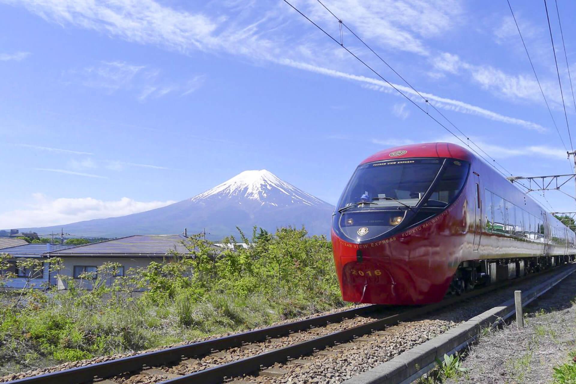 富士山景觀特急列車是富士急行公司所經營,於2016年4月開始行駛於山梨縣大月站到河口湖站。該列車的設計亦是知名工業設計師「水戸岡鋭治」操刀,以朱紅色為主色並搭配金色作為點綴色,給人華麗貴氣的氛圍;車廂內則是以典雅的溫暖木質為主,充分展現了日式風格情懷。