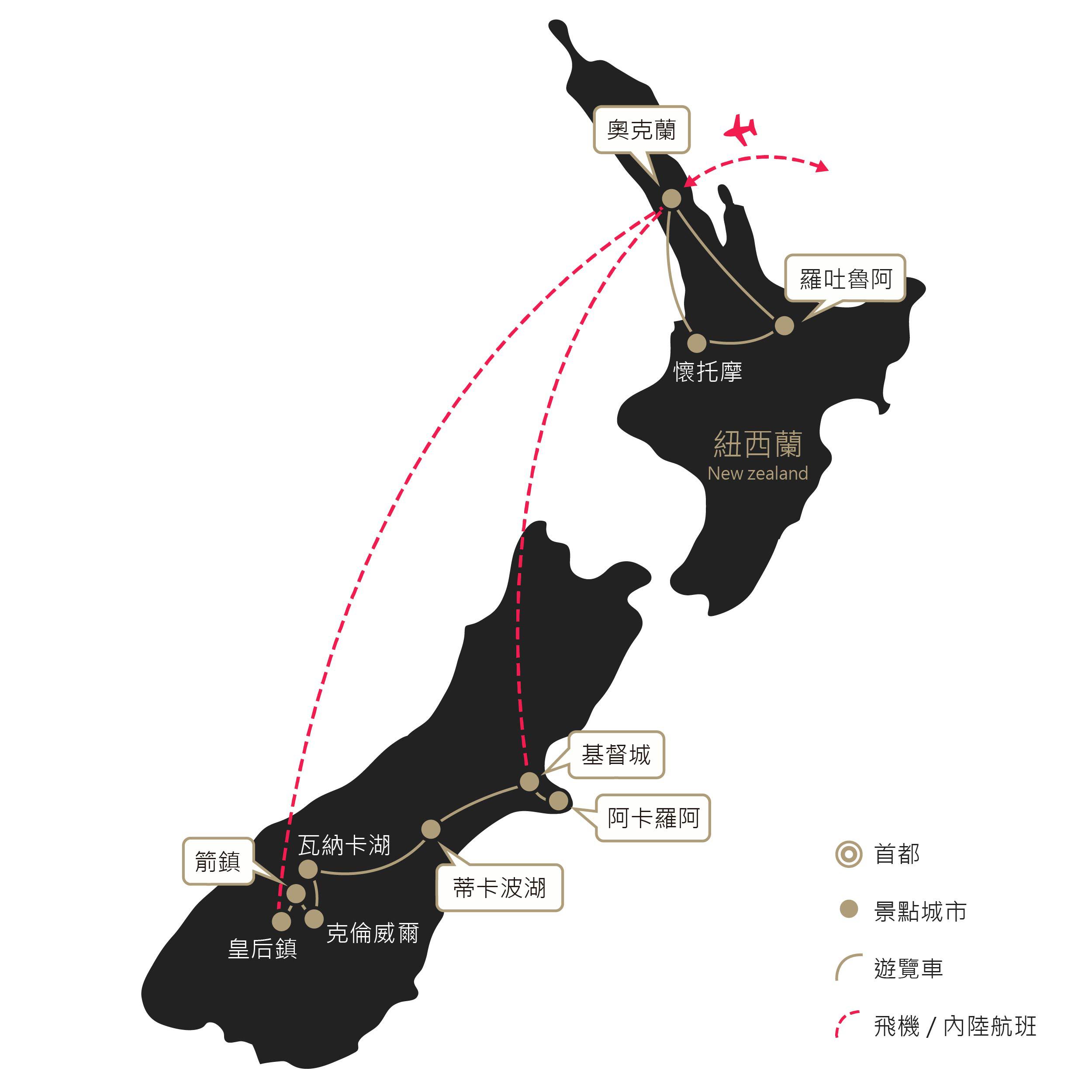 2.【貼心提醒】紐西蘭飯店的雙人房,以一張大雙人床為主。若要改成兩張單人床,請於報名時告知,我們會盡力協助,但無法保證飯店皆可配合。