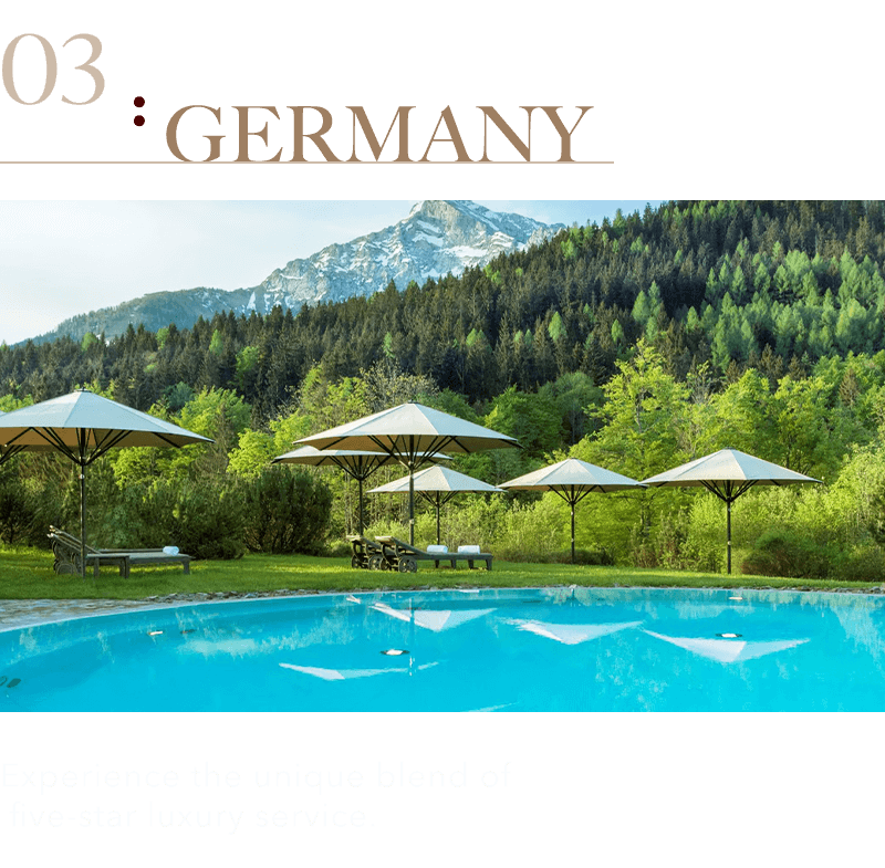 5星貝希特斯加登Kempinski Hotel Berchtesgaden/或5星薩爾茲堡薩赫飯店Hotel Sacher Salzburg(若客滿或休息,將改住鄰近城市4星飯店,並每人退NT1,000元)