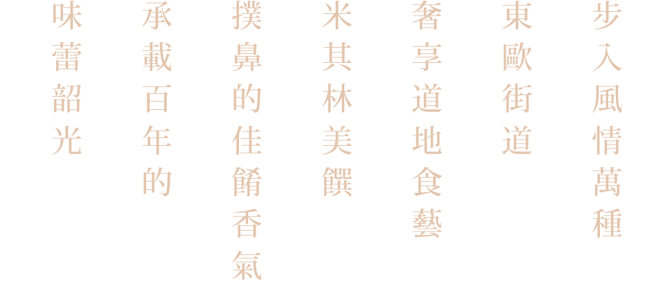 榮獲「米其林指南」的肯定,精湛的藝術佳餚表現季節彩影,主廚以創作藝術品的態度,體現食光饗宴中的細膩風華。