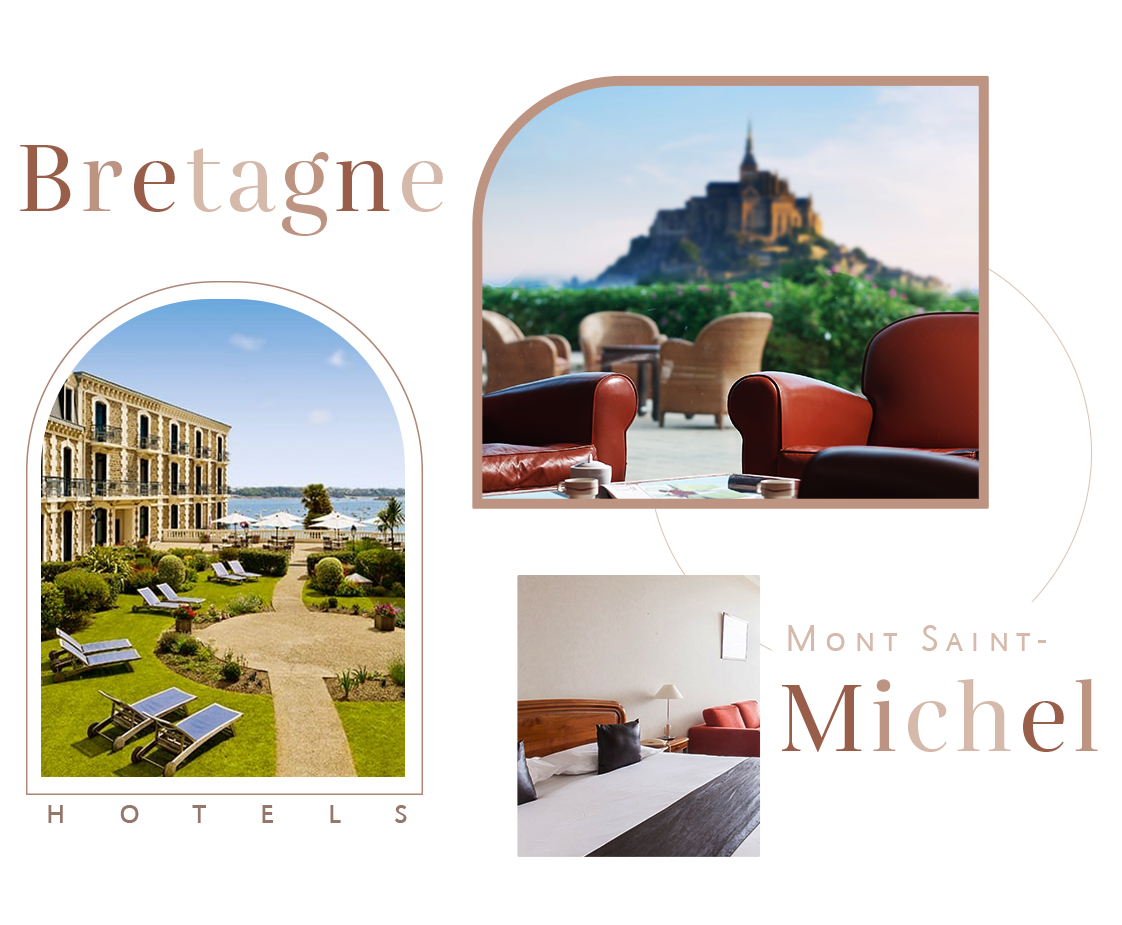 4星布列塔尼大區Hotel de l'Abbaye Le Tronchet Saint Malo或Mercure Saint Malo Balmoral/或4星聖米歇爾山島外Relais Saint Michel或Mercure Mont-Saint-Michel/或5星Le Grand Hotel Dinard(若入住5星飯店,價差由加利利旅行社吸收)
