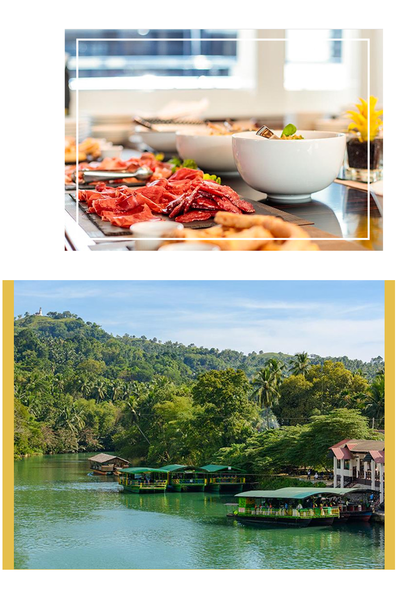 安排在知名的海灘渡假村用餐,品味豐富多變的亞洲、美式和菲律賓特色佳餚,讓味蕾沉醉美食之林。