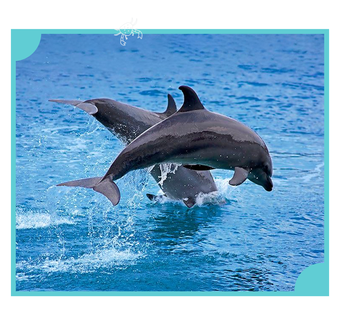 快看!是誰跳出海面,正在向我們打招呼呢?古靈精怪的海豚們時而翻躍、時而並行,模樣十分可愛逗趣。