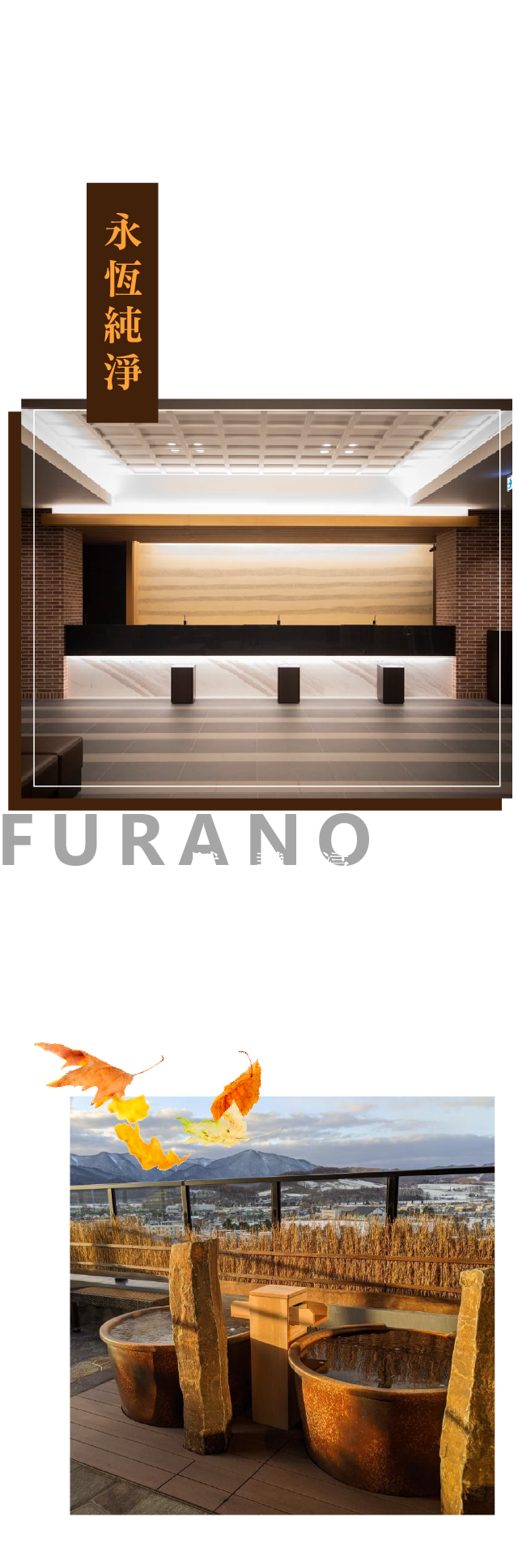 2022年隆重開幕,定山溪溫泉區最新夢宿,大廳展示獨特書法藝術。客房皆設有天然溫泉浴,兼具和風職人精神與西式嶄新創意,讓貴賓遠離世俗塵囂,為北國的幽謐壯麗而心醉。