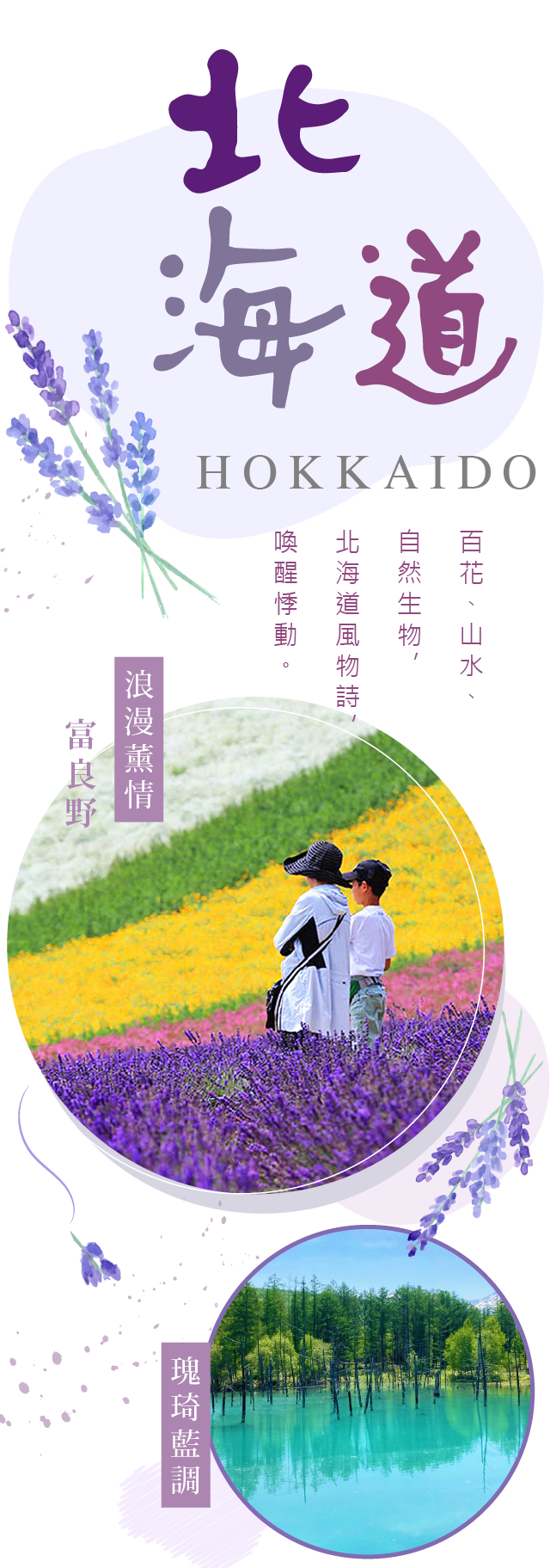 6月底至8月中,北國大地化為幻紫仙境,安排漫步富良野富田農場,或徜徉美瑛四季彩之丘,陶醉薰衣草花海的馥郁芬芳。