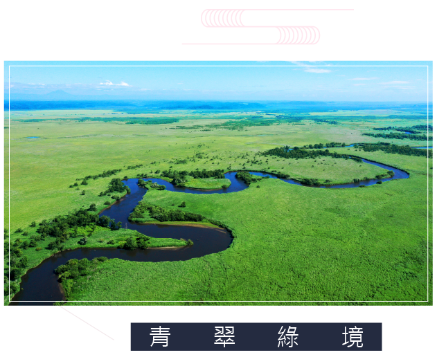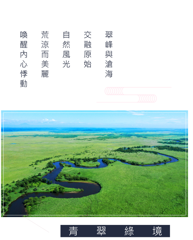 廣袤綠原在夏陽下綻放盎然生機,露珠輕吻草葉與蘆葦,蜿蜒河道映照藍天如鏡,丹頂鶴在濕地翩然起舞。