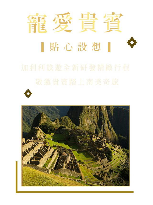 領先市場超高規格,安排中段航班接駁,並攜手尊爵極奢的「東方快車」和「的的喀喀號景觀火車」,暢遊秘魯,就是這麼愜意又尊貴!