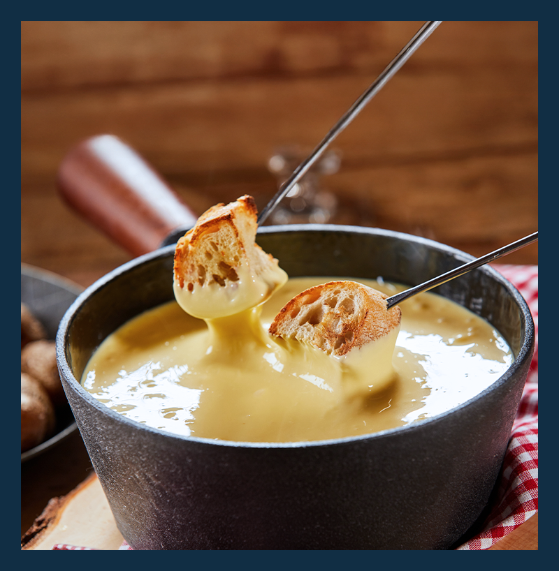 將麵包沾滿起司,濃郁的香氣在嘴裡逕自流淌,瑞士道地的甜蜜口感,絕對不容錯過。