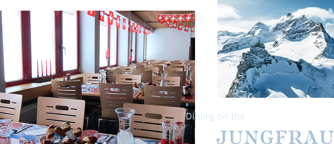 在少女峰上用餐,飽覽雪景覆蓋的壯麗山巒,沉醉白色純淨的大地,品味瑞士人精巧餐餚。