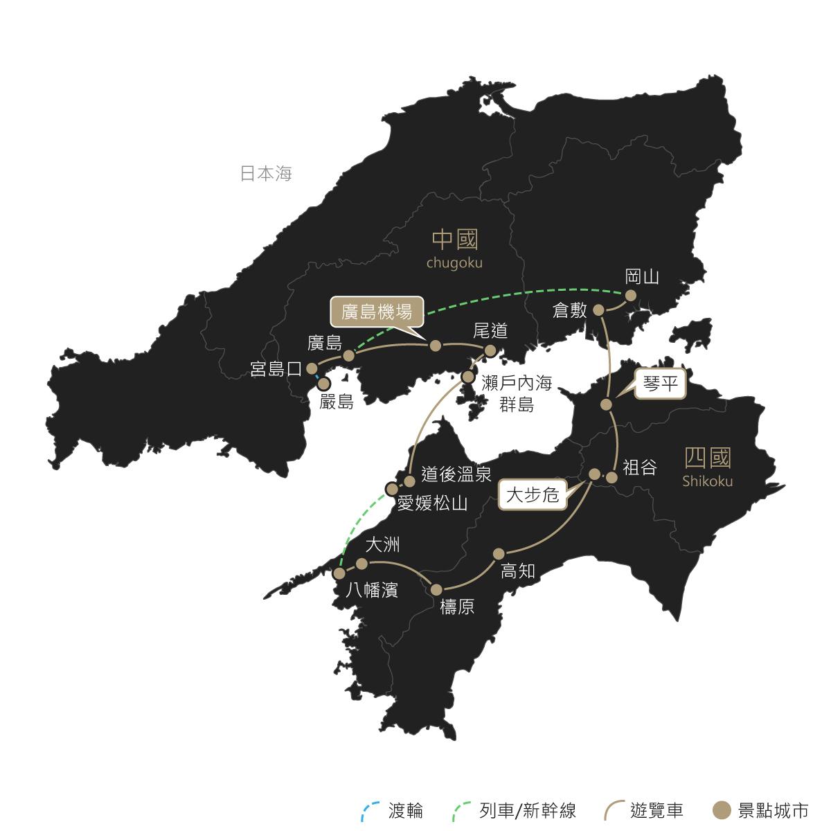 台北/廣島-尾道-瀨戶內海群島*耕三寺博物館+未來心之丘、龜老山展望公園*-道後溫泉