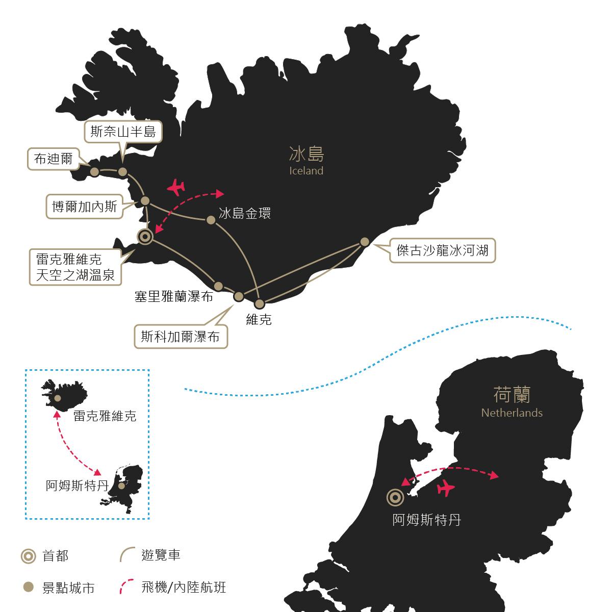 1.【參考航班】FI501 阿姆斯特丹/雷克雅維克 1410/1525。