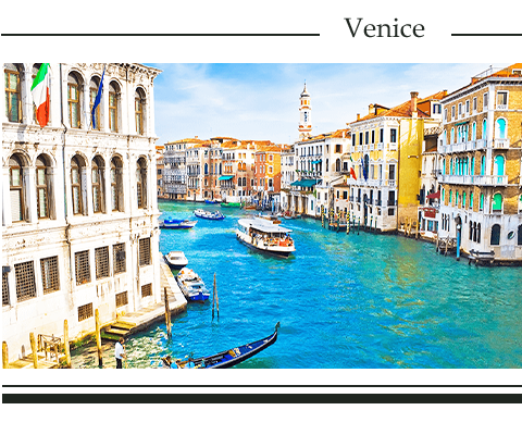 下榻唯美的威尼斯,悠遊水都風光,漫遊聖馬可廣場、聖馬可教堂、道奇宮、精品大街等。