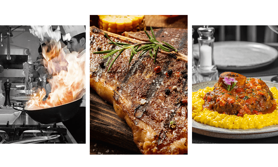 享譽全球的佛羅倫斯牛排,厚度紮實並帶著燒烤香氣,特別安排2人同享一公斤丁骨牛排,享受連骨帶肉的豪邁滋味。