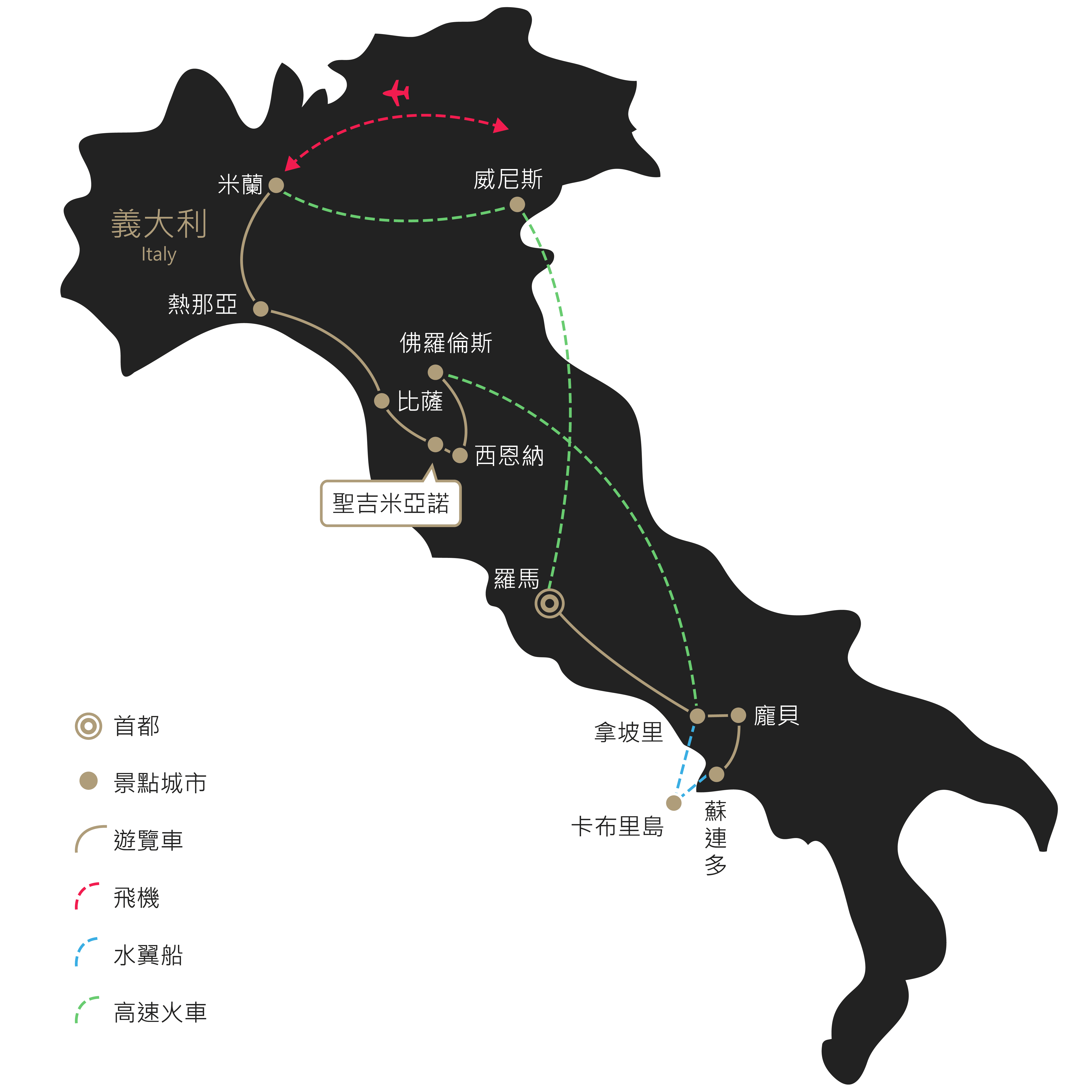 【團費包含】★義大利高速火車、★龐貝(專業中文導遊)。