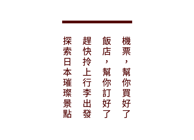 根據您的旅遊需求與預算,以及訂機票、飯店、包車等項目,量身打造自由行方案,並提供報價以及後續討論。