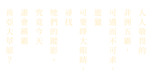 因為肯亞大草原的野生動物,都是自由自在無拘束,為確保貴賓安全,遊獵全程皆在車上進行,不可下車。