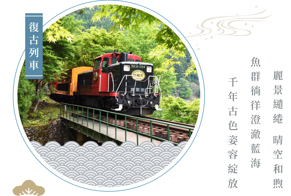 【團費包含】★石清水八幡宮纜車、★嵯峨野小火車(若客滿或休息,將改安排嵐山人力車2人一台)。