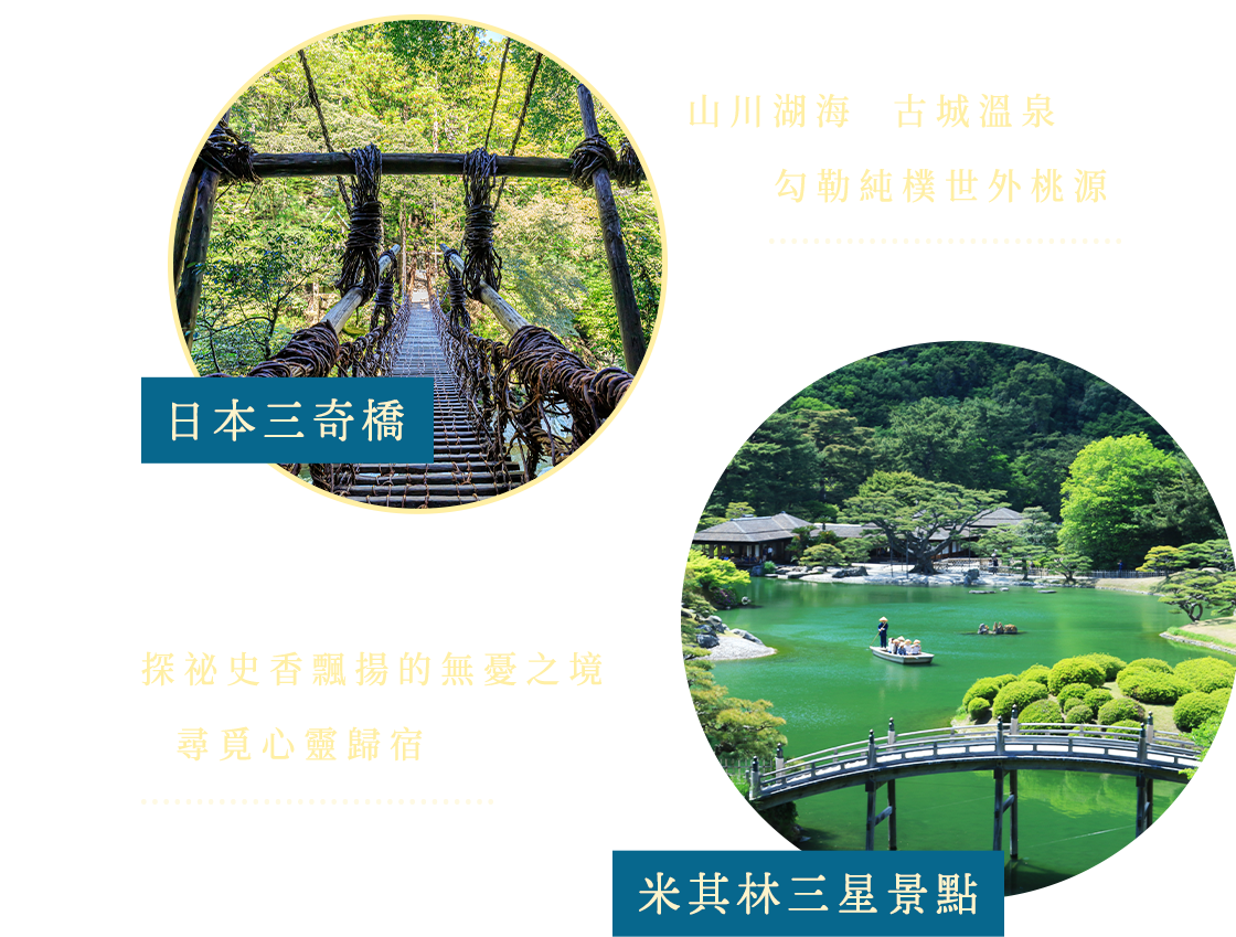 四國的溫泉非常著名,難得走訪四國鄉鎮,我們將精選入住高雅的日式溫泉旅館。加利利安排和洋式套房為主,享受溫泉飯店雅緻的環境和細膩的服務,沉浸在溫暖療癒的湯泉時光。