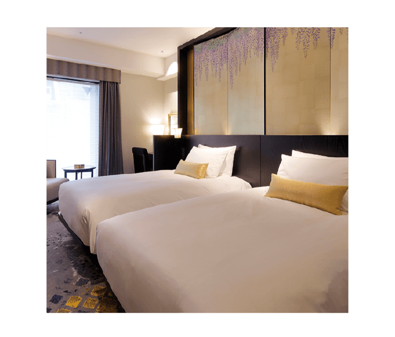 緊鄰兼六園、近江町市場的高雅藝宿,大廳綴以金箔、友禪絲綢、九谷燒陶瓷,一眼望盡庭園景緻。客房皆配有屏風式床頭板,漆黑基調融合燦金元素,演繹洗鍊大氣的加賀美學。