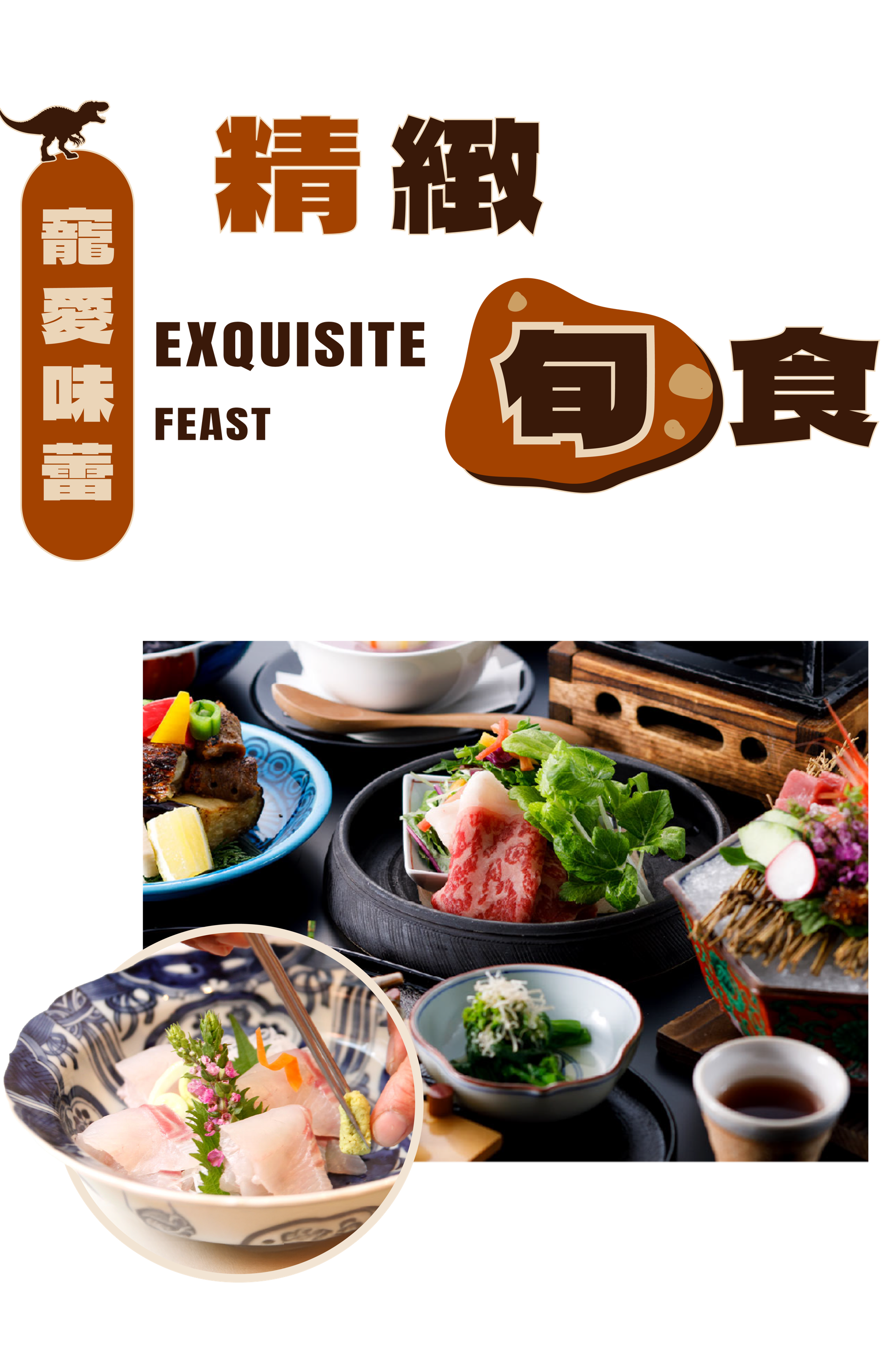 主廚選用福井在地食材,巧妙融入恐龍圖騰與特徵,打造50種以上玩心十足的創意佳餚,每一口都是味蕾與想像力的探險。