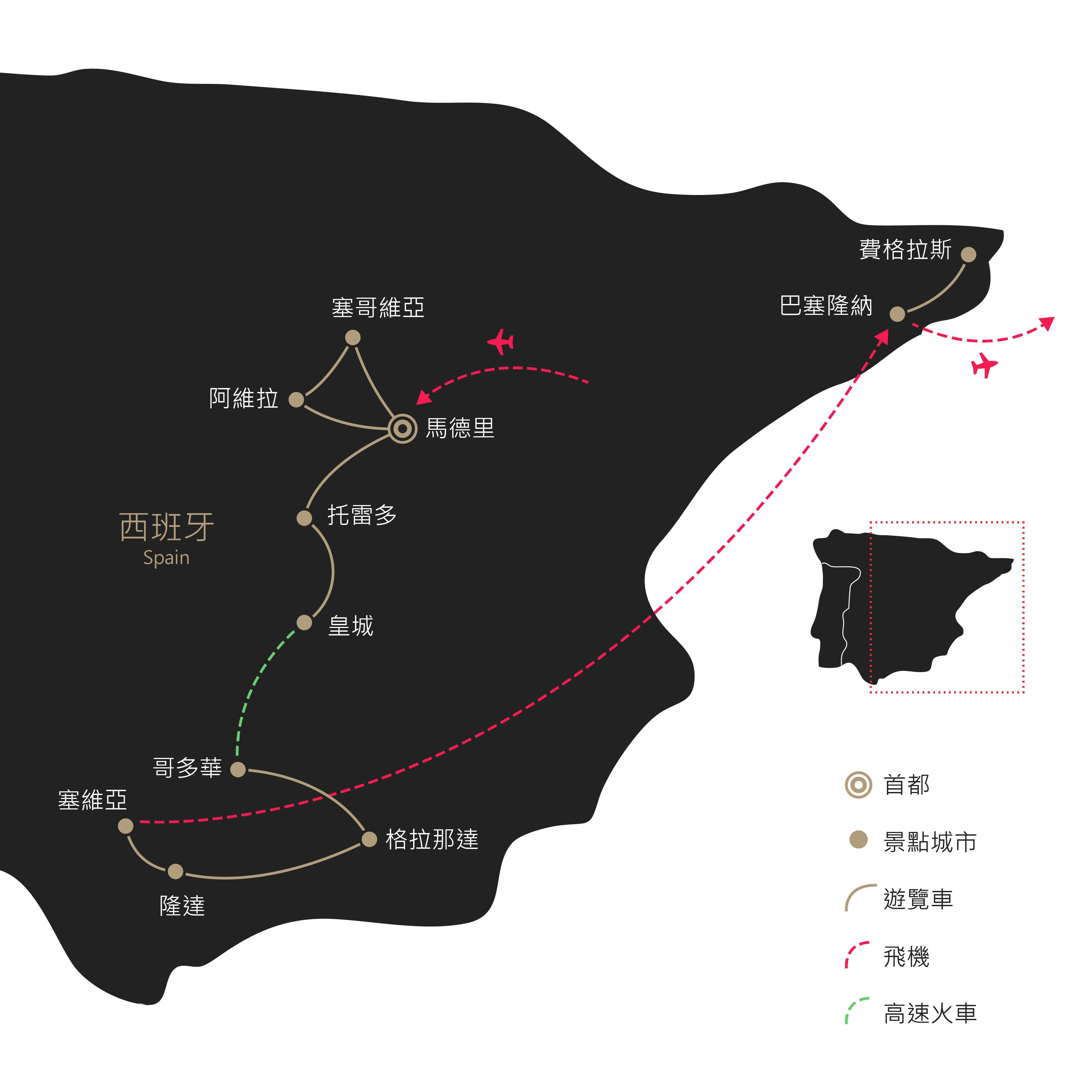 馬德里-托雷多*教堂、修道院*-皇城++高速火車++哥多華
