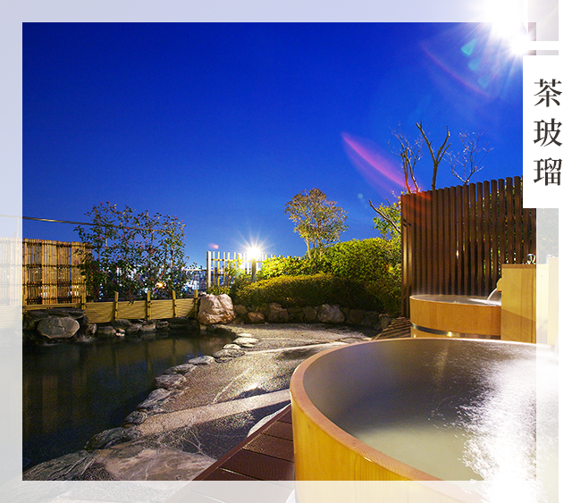 親訪日本三大古湯之一的千年名泉,「茶玻瑠」坐擁道後首座頂樓露天溫泉,南有松山城、北有石鎚山,景緻優美宜人,邀請您和光輝閃耀的明月與星辰,一同沉靜心靈。