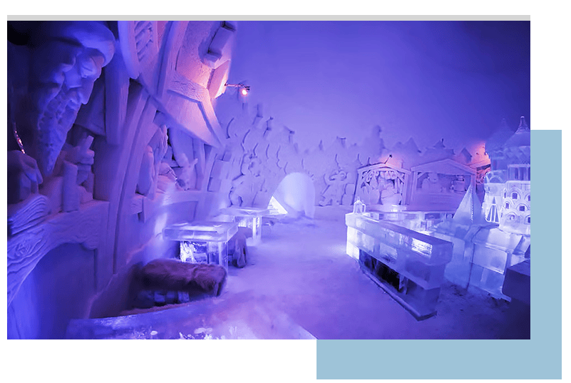造訪冰雪砌造的Snowhotel Kirkenes 365,零下4°C的夢幻仙境中,絢彩燈光映照冰吧等精湛冰雕工藝,打造難忘「凍感」時刻。
