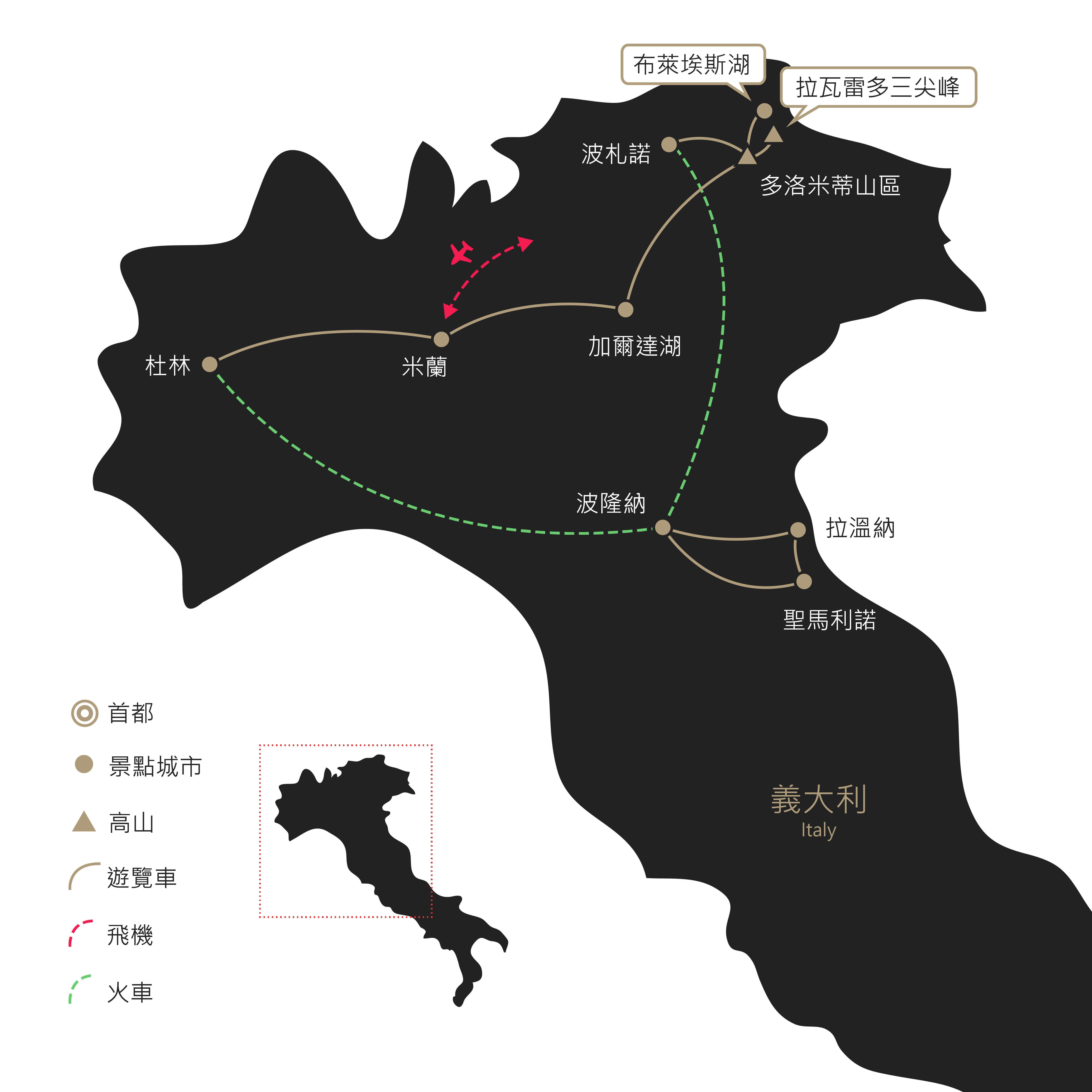 多洛米蒂山區-加爾達湖*西米歐尼*-米蘭