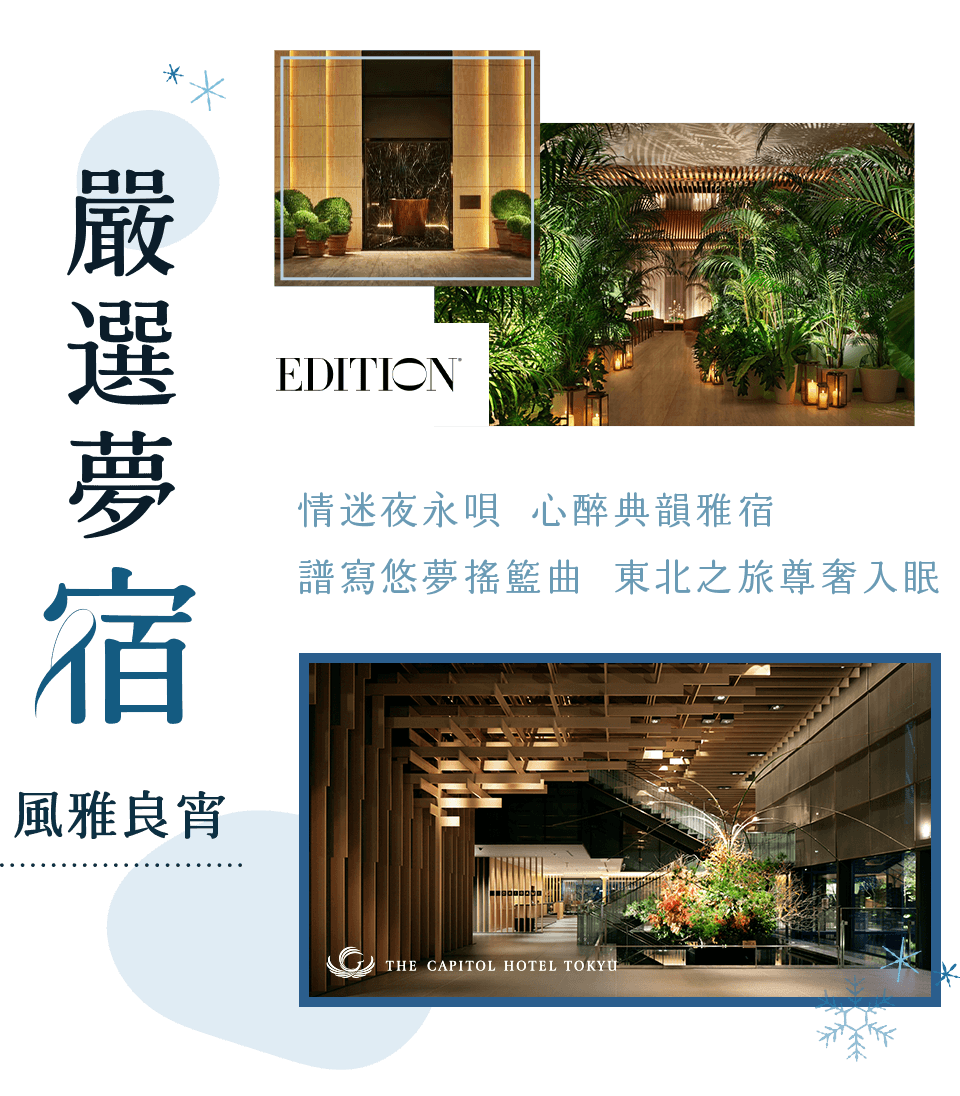 旅行不只是抵達目的地,更是美學的品味!我們精緻設計「星曜日本」系列:獻給注重品質的加人,攜手一趟充滿質感的美學漫旅──嚴選名聞遐邇的奢雅飯店,感受日本職人精神。在溫泉的氤氳以及味蕾的驚豔之間,獲得五感的療癒昇華,沉醉優雅渡假時光。
