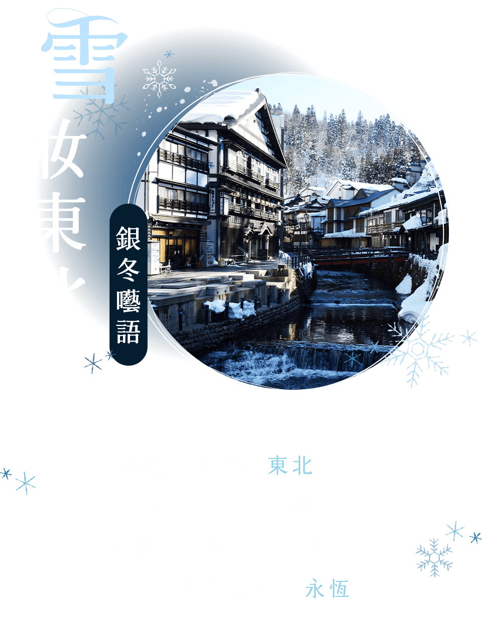 曾因銀礦而繁盛一時的小鎮,搖身一變為木造懷舊溫泉街,洋溢大正浪漫情懷。皎潔銀雪翩覆,渲染凜冬的純淨寧謐,彷若置身飄蕩夢幻氣息的遺世國度。