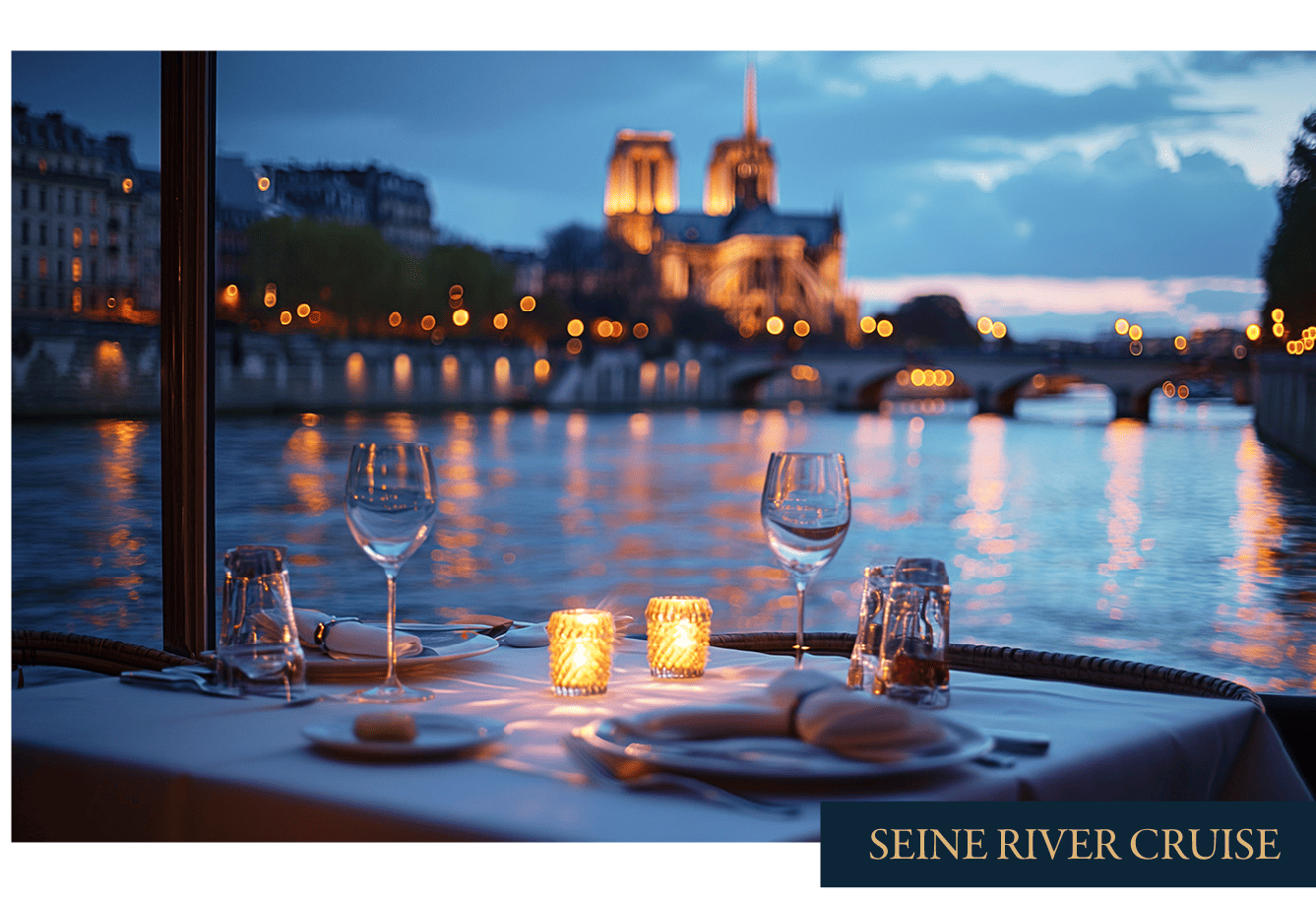 搭乘遊船欣賞塞納河沿岸名景,尊享三道式動人饗宴,品味精緻餐餚搭配美酒,花都的夜晚璀璨迷人,讓人深深陶醉!