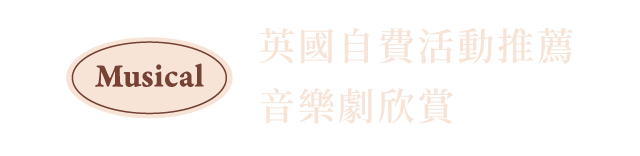 倫敦的音樂劇節目相當豐富,每年吸引藝文愛好者朝聖,歡迎貴賓來電洽詢,選擇欣賞自己喜歡的劇作:(1)悲慘世界,(2)歌劇魅影,(3)獅子王,(4)媽媽咪呀。