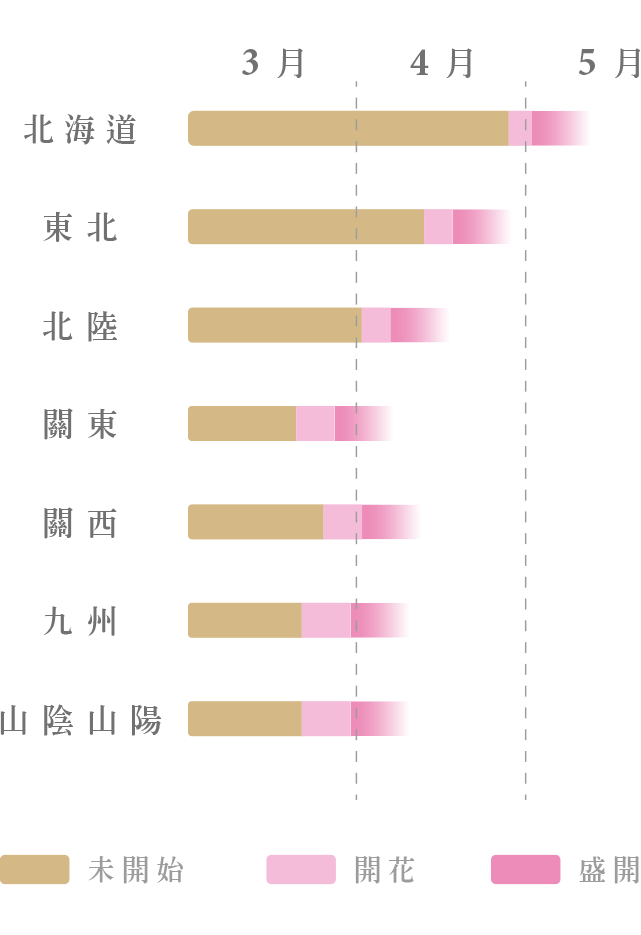 貼心提醒:上圖為花開預測圖,提供貴賓參考,由於櫻花易受天候影響,因此無法保證花況多寡,請以愉悅的心情暢遊。