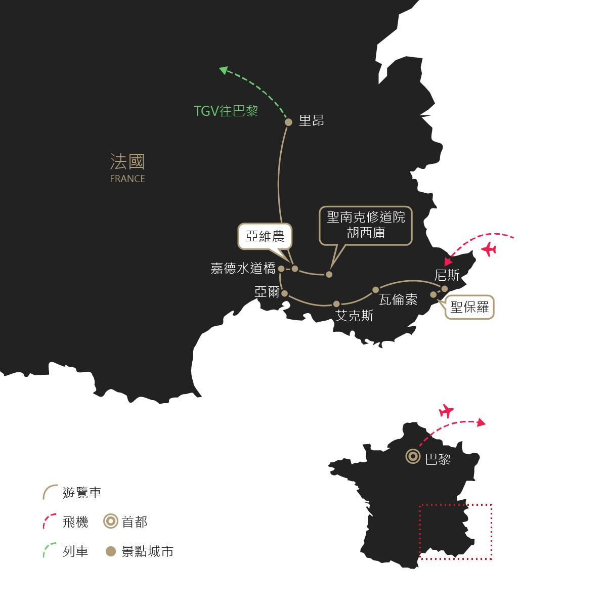 2.【貼心提醒】遊覽艾克斯或馬賽,將視當晚入住城市而定。