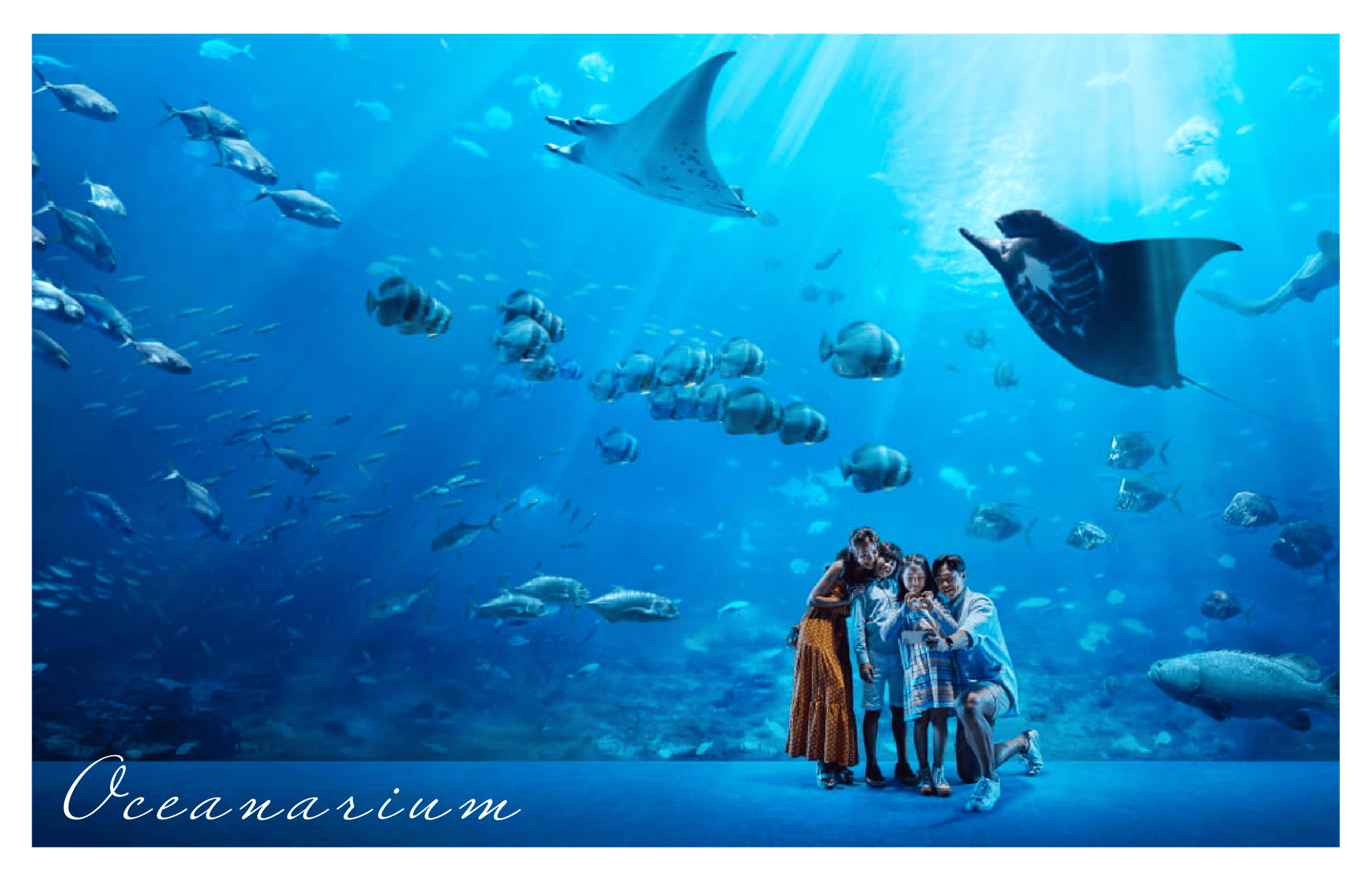超過800種、10萬隻以上海洋生物自在徜徉,鯊魚威猛遨遊,珊瑚繽紛夢幻。透過全球最大的海洋觀景窗,探索海底奧祕。