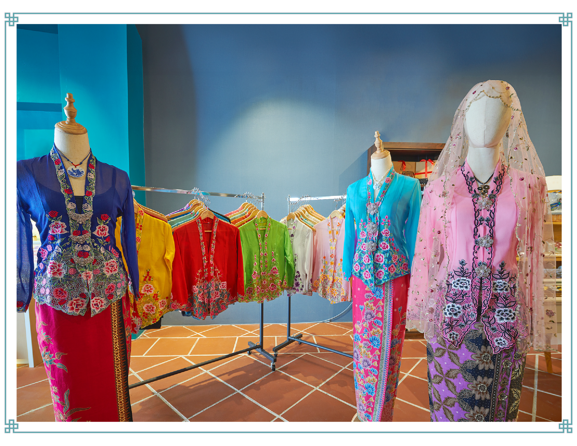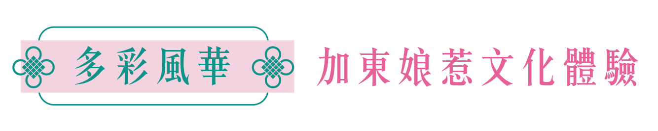 (1)娘惹服飾變裝:換上華美的「可巴雅」,化身優雅娘惹。(2)娘惹冰箱貼瓷器彩繪:親手繪製花磚紀念品。(3)娘惹糕下午茶:品嚐繽紛傳統糕點。
