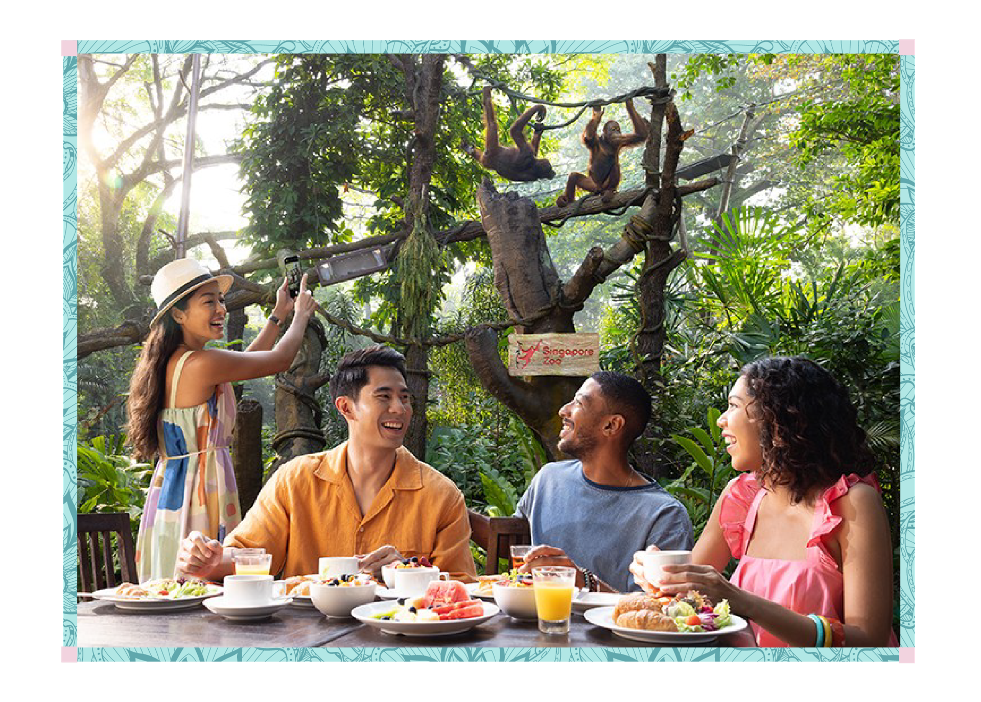 在綠意盎然的熱帶雨林享用早餐,近賞紅毛猩猩俏皮嬉戲,寫下歡笑滿溢的野趣回憶。
