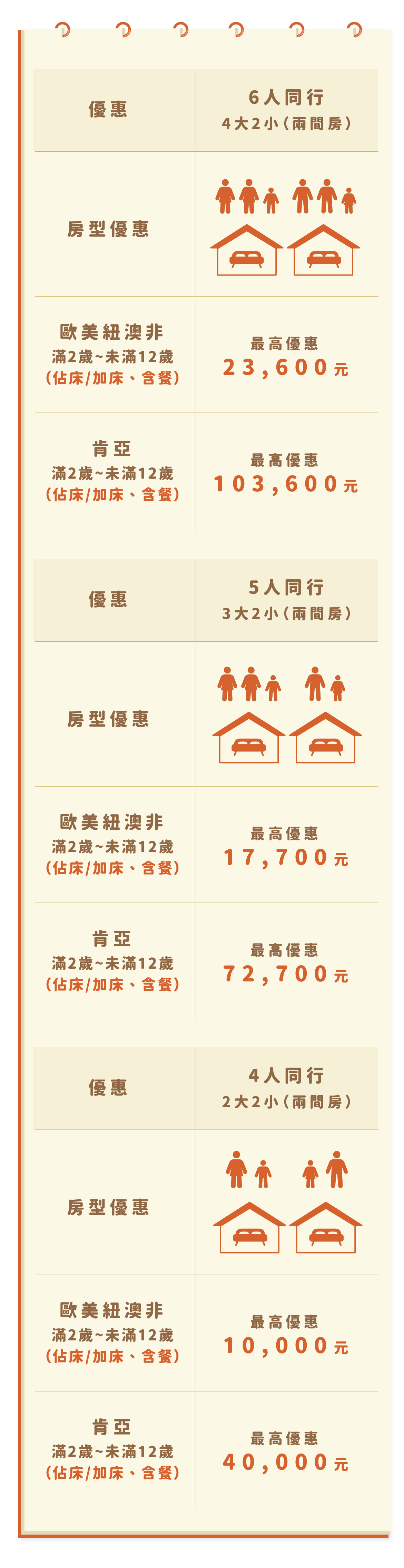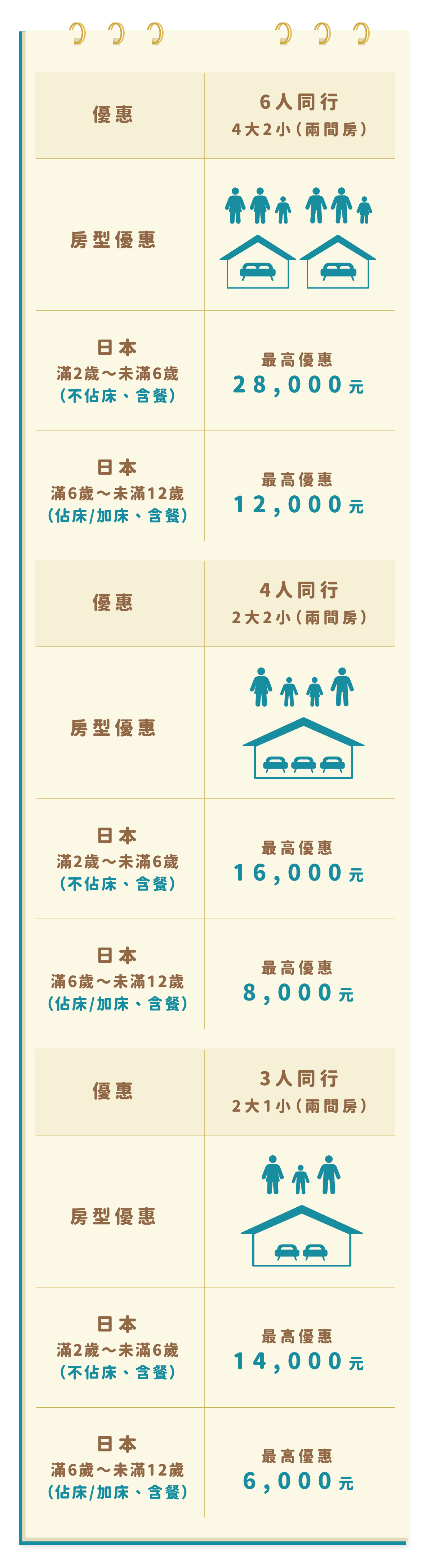 (1) 每團未滿12歲小孩:限收6位。