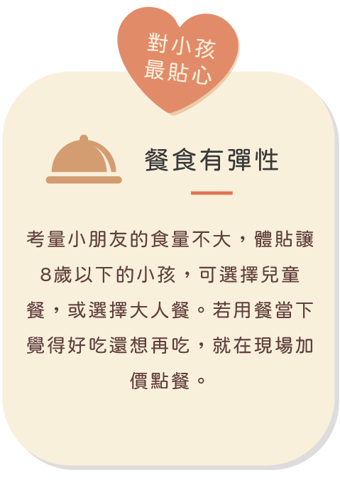(2)8歲以下小孩可選擇兒童餐,或選擇大人餐。